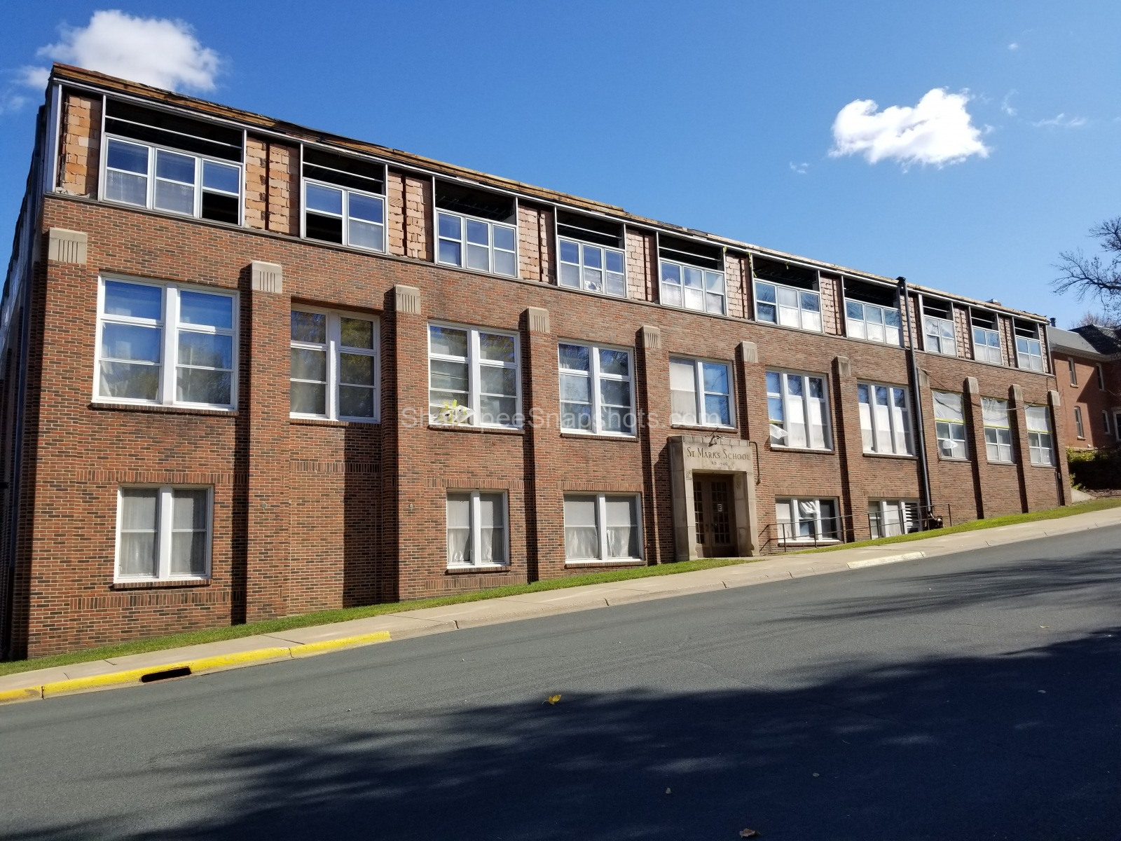 The June 12, 1941 Shakopee Argus-Tribune notes that demolition of a large portion of the original St. Mark’s School, erected in 1883, occurred that summer. Part of that building was preserved and incorporated into the Sisters’ residence. The bell from the original school was relocated to a “pent house” atop the new St. Mark’s School.